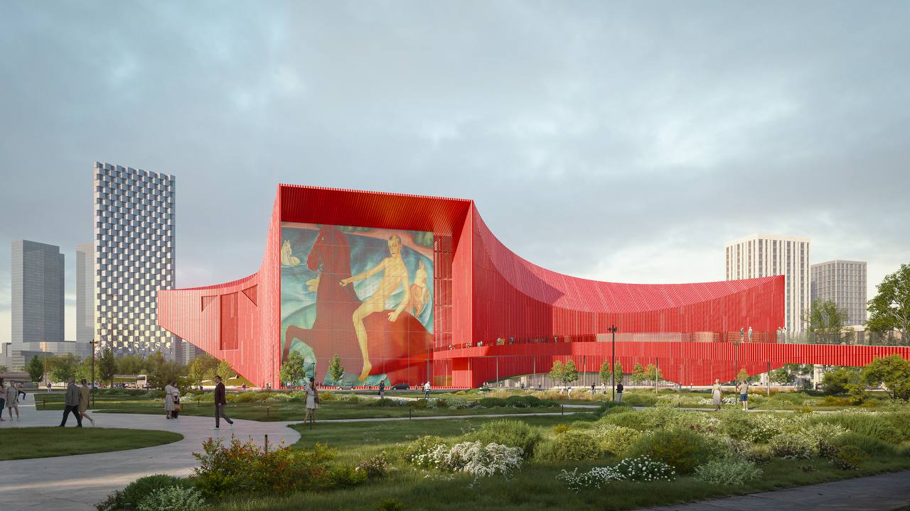 Депозитарно-выставочный комплекс планируют завершить к концу лета 2028 года. Для реализации выбрали авангардное решение от бюро UNK — яркий скульптурный объем в красных тонах.